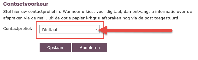Kies bij Contactvoorkeur voor ‘Digitaal’