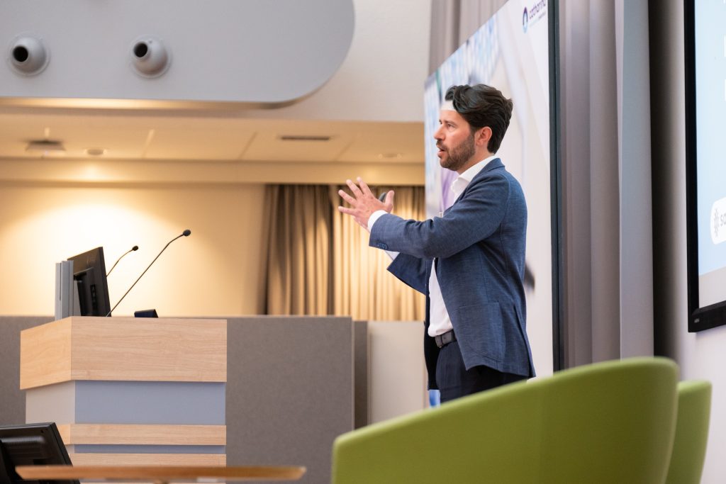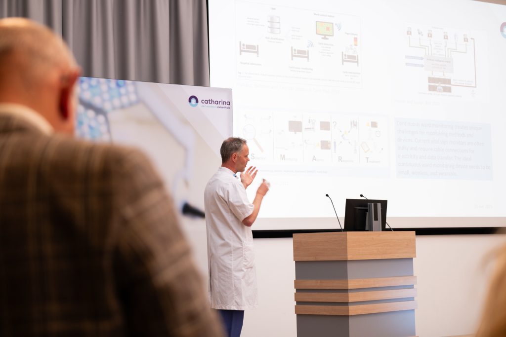 Anesthesioloog Arthur Bouwman vertelde over AI in de zorg en technologische innovaties zoals de Healthdot, een slimme pleister die onder meer ademhalingsfrequentie en hartslag meet. Daardoor kunnen patiënten eerder naar huis (en is hun bed beschikbaar voor anderen), maar behouden zij hun gevoel van veiligheid doordat zij constant gemonitord worden.