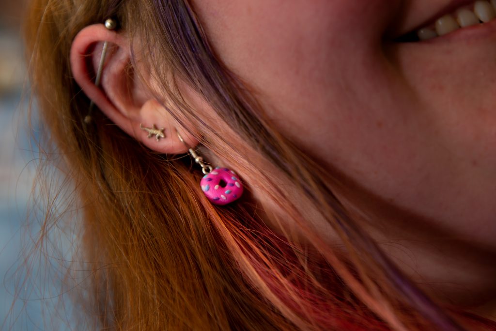 Ook Sabine heeft een ‘te gek plannetje’ doorgezet. “Naomi maakte van haar leven een feestje en had gevleugelde uitspraken. De ‘do not worry’ sieraden zijn hier een goed voorbeeld van. Dat was onze spreuk, gelinkt aan een donut, en een verwijzing naar de opening van de CT-scan. En Naomi maakte er dan van ‘do nut worry’. Gewoon even positief zijn met een donut! Ik heb haar op een bepaald moment roze donut oorbellen gegeven. En die droeg ze bij alle spannende momenten in het ziekenhuis. Voor de lol maakten we donuts met klei en hadden we wilde plannen om hier meer mee te doen. Dat is er helaas niet meer van gekomen. Na haar overlijden heb ik voor het hele team paarse donut oorbellen gemaakt. Die droegen we tijdens haar uitvaart. En daarna ben ik er mee doorgegaan, het gaf een positieve flow in een verdrietige tijd. En het gaf me een doel: geld ophalen voor onderzoek. Want net voordat ze stierf zei ze nog tegen me: ‘als je iets doet met de oorbellen, breng het geld dan waar het hoort te zijn. Hier dus!”